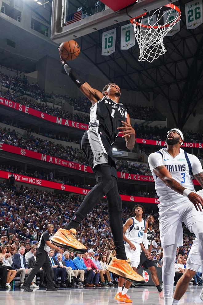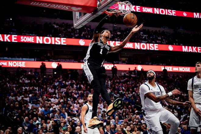 然而,馬刺隊(duì)超級(jí)新星文班亞馬才應(yīng)該是今日的MVP。面對(duì)實(shí)力強(qiáng)大的獨(dú)行俠,文班亞馬展現(xiàn)了頂級(jí)的球星表演。文班亞馬在上半場(chǎng)不斷在禁區(qū)肆虐,連續(xù)多次完成暴扣,率隊(duì)一度取得了兩位數(shù)領(lǐng)先。前2節(jié)就砍下了21分的文班亞馬,早早進(jìn)入了攻擊模式。